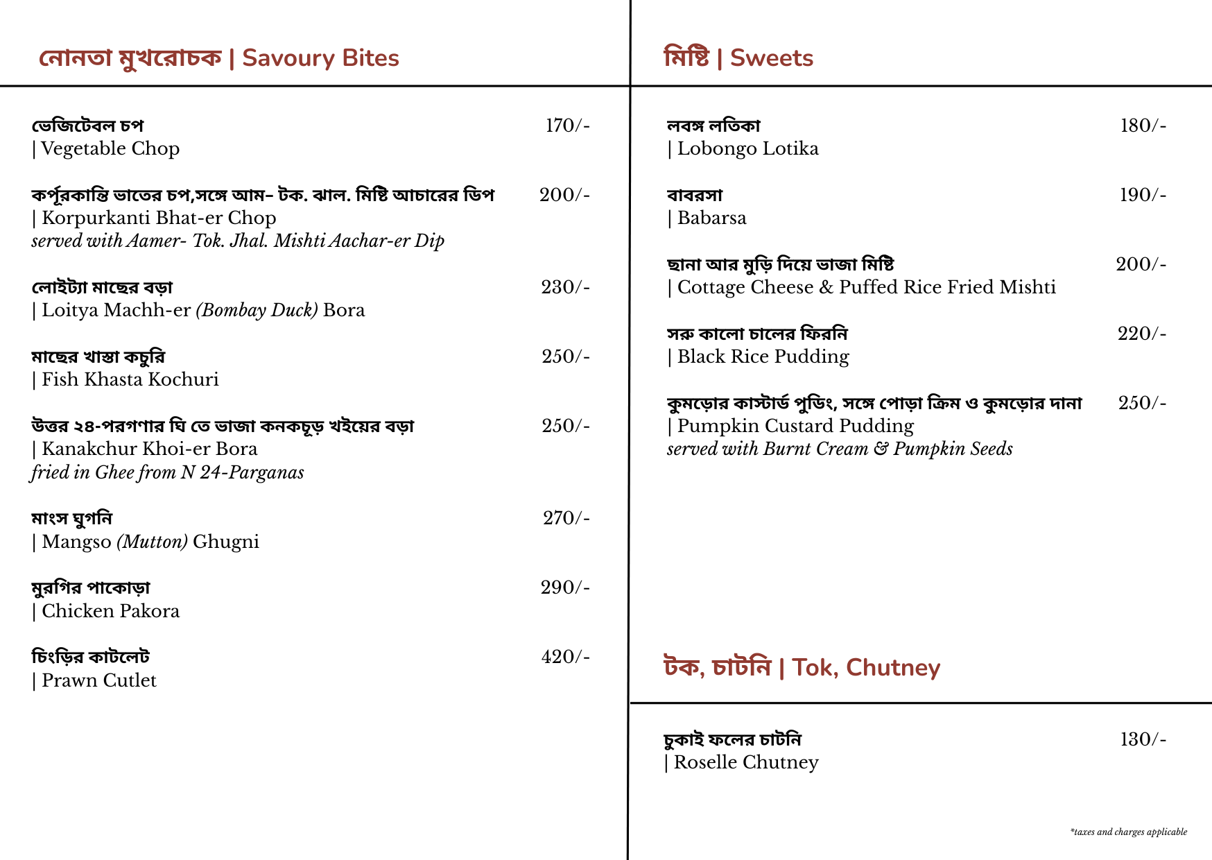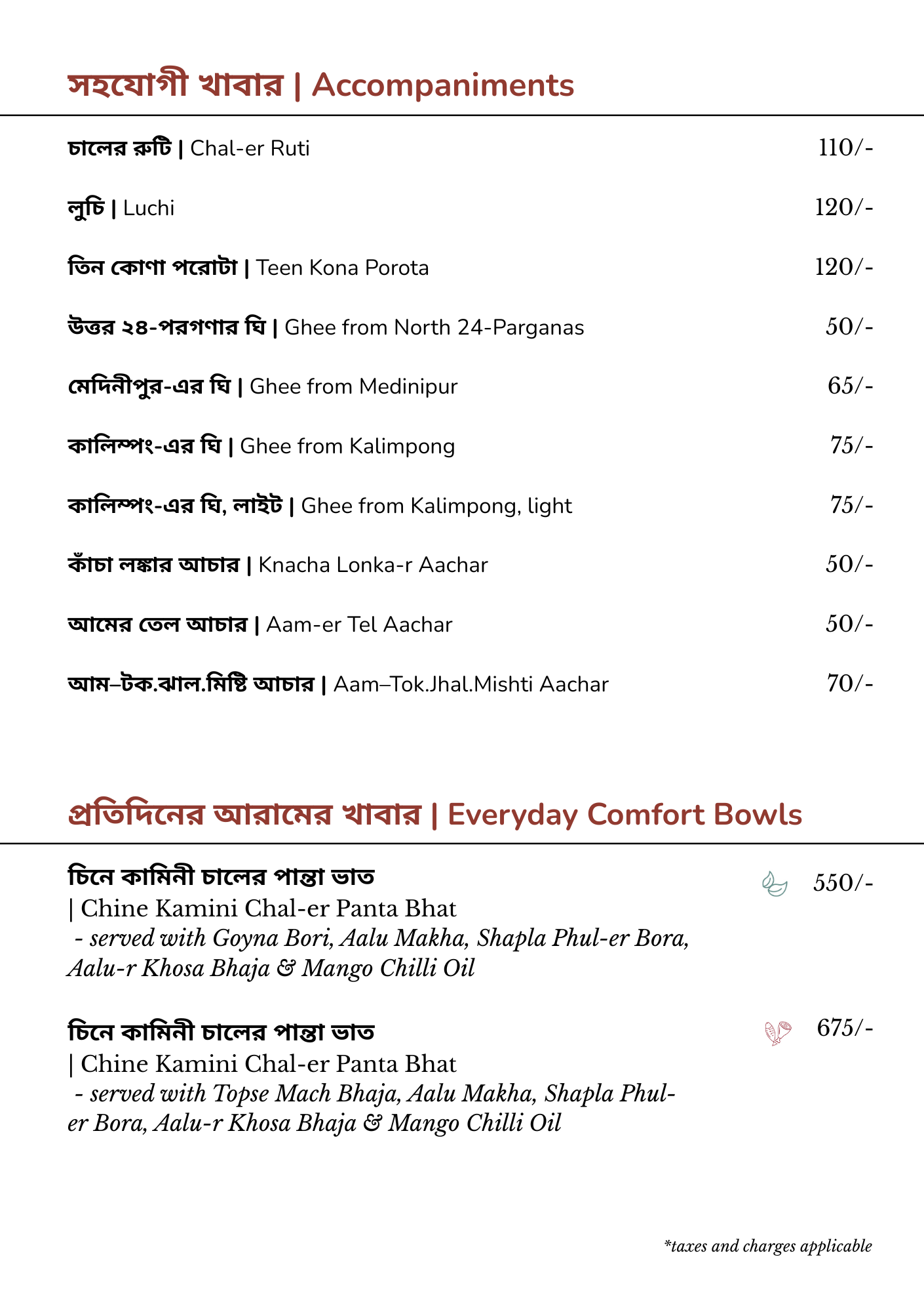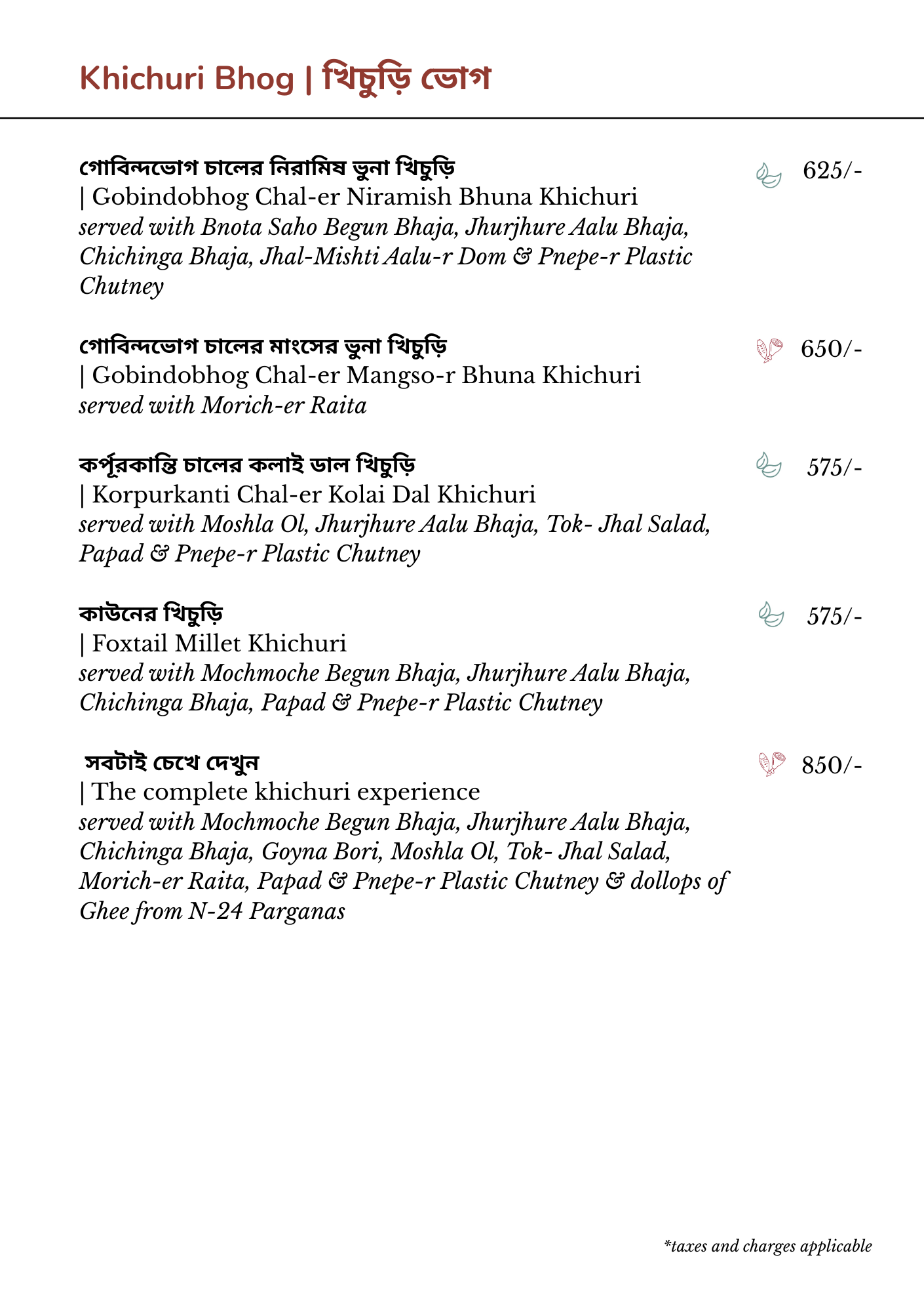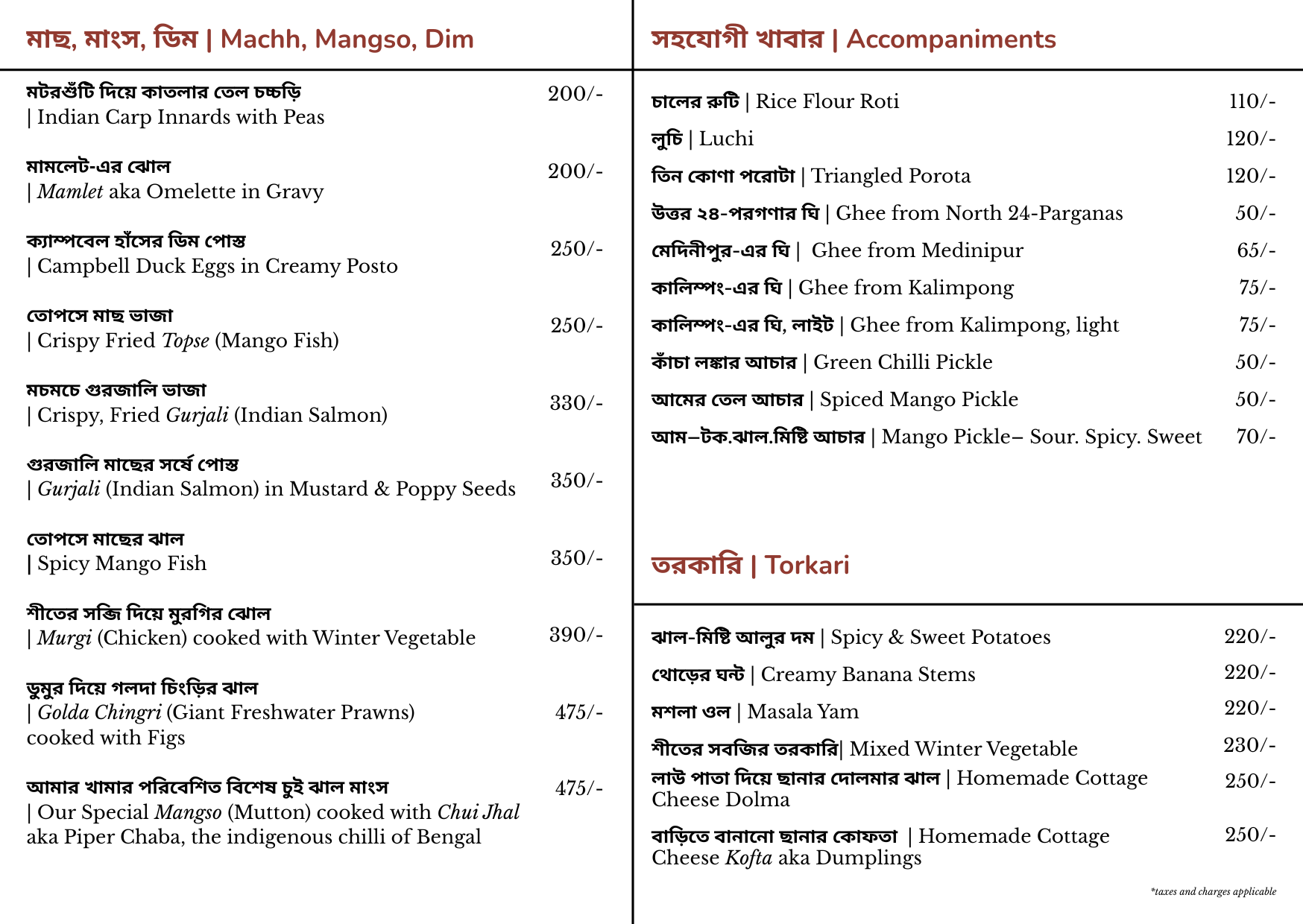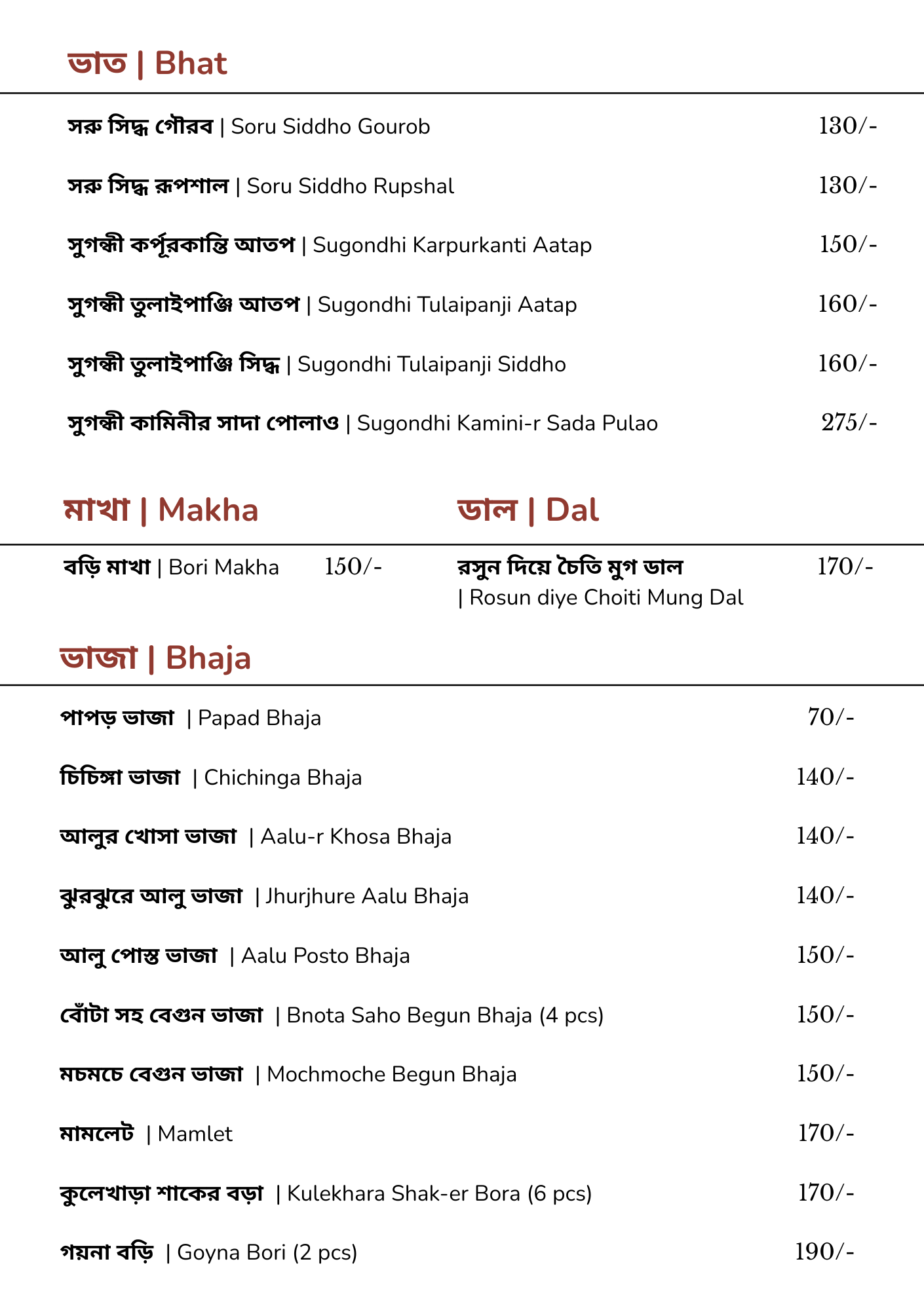 With prime produce from our farming communities across different districts of Bengal, we bring you the diversity of a Bengali home-cooked meal. Respecting seasonal shifts, each morsel is packed with immense flavour and takes you across regions and the diverse kitchens of Bengal. A reflection of not one but several homes across Bengal, just like our ingredients.