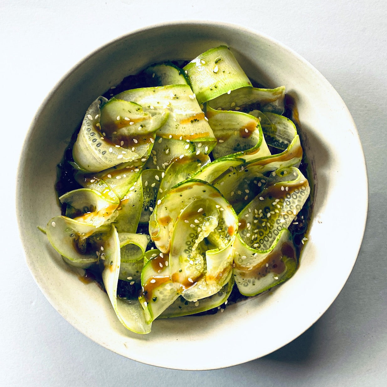 We have re-interpreted seeni sambol and burka black for summer. The rice has been cooked with toasted coconut and bits of green mango; finished with dressed cucumber, sesame, gondhoraj kosho oil and a caramelised onion sauce for sweetness.