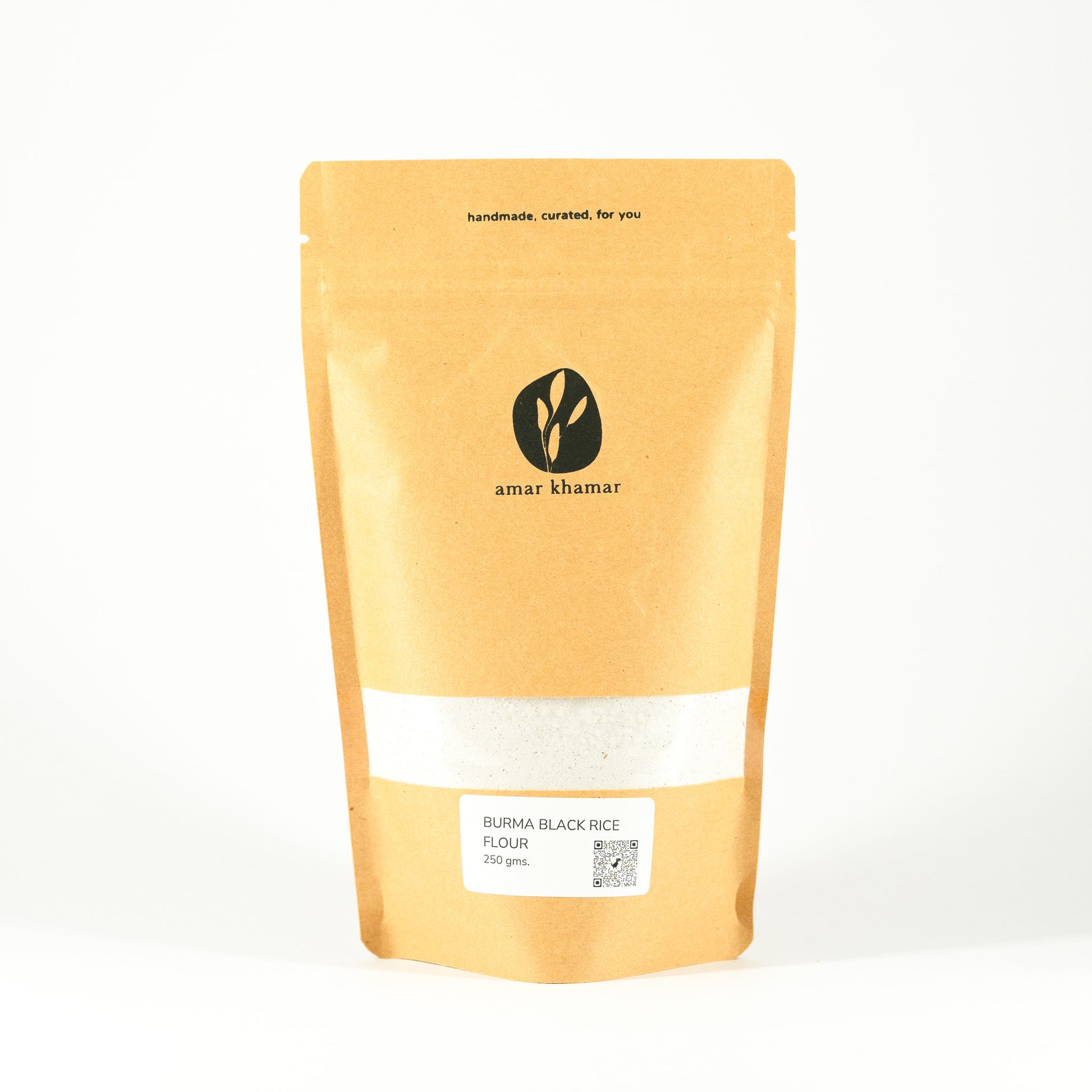 This rice flour is made from the unique heirloom rice variety Burma Black. It is a delightful variety from North 24-Parganas known to be rich in antioxidants. We carefully grind it in small batches for you to indulge.