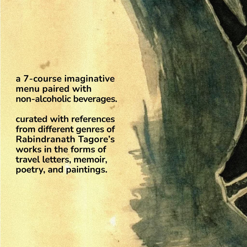 A seven-course imaginative menu that draws its inspirations from Tagore’s journeys between the inner and outer realms, the home and the world and aims to create a dialogue between the literary text and culinary art.