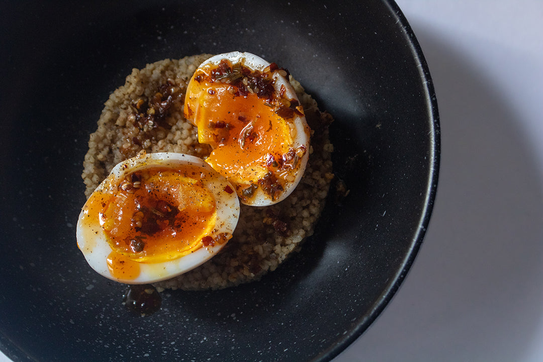 We made some simple breakfast pairing with Kodo, of eggs and chilli oil, to savour the colour of the beautiful grains and the brilliant hue of the yolk. The fluffiness of the grains and creaminess of the yolks is something that we thoroughly enjoyed about this one.
